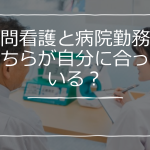 2024年9月18日 / 最終更新日時 : 2024年9月6日 wp-poster 訪問看護 訪問看護と病院勤務、どちらが自分に合っている? 看護師として働く場所を選ぶ際、病院勤務と訪問看護にはそれぞれ異なる特徴があります。この記事では、どちらの働き方が自分に合っているかを見つけるために、それぞれのメリットとデメリットについて詳しく解説します。 病院勤務のメリ […]